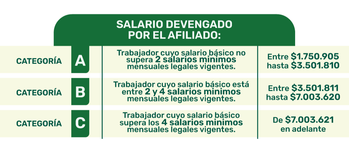 Ten en cuenta que la categoría depende del salario devengado por el afiliado: